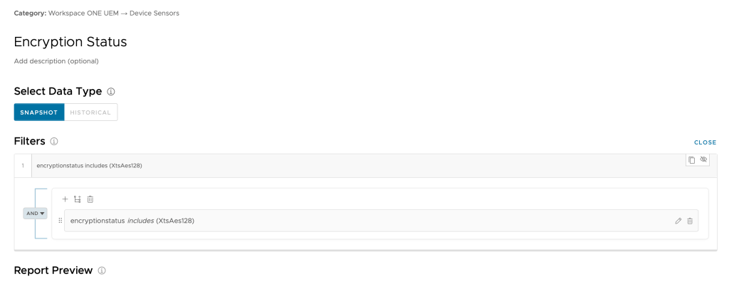 Now using the Intelligence Dashboard feature you can view the Sensor output and track the status of your device fleet, in parallel you can use Freestyle orchestrator to tag the devices which are XtsAes128 bit encrypted and based on the tags you can then decrypt the devices using a power-shell script and then re-encrypt them using a UEM bit-locker profile to a 256 bit encryption. ( This is planned for the next blog.. )