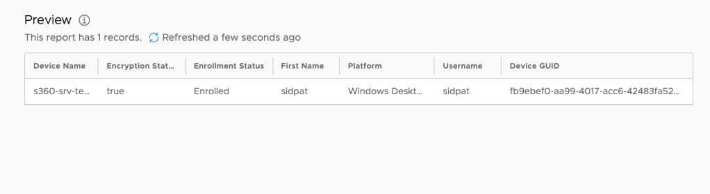 Once the Sensor is saved it will be pushed to the device and it might take up to 2-3 minutes for the sensor to execute and show an ouput on the UEM console.