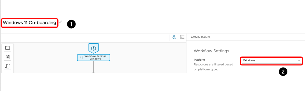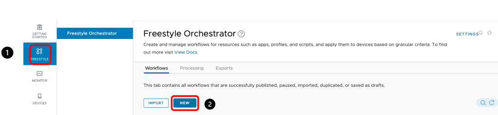 How do we start building a Freestyle workflow which would help in installing the security settings and applications when the device onboarding is completed . Lets have a look at an example below,