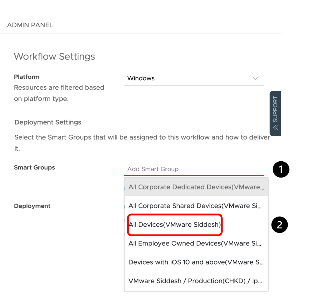 After selecting the platform select the smart group as seen in the image below (The smart group needs to be configured in prior)