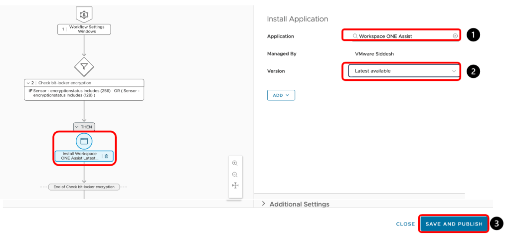 Using the above workflow we can be assured that if and only if the device is encrypted will the Workspace ONE Assist application install on the device.